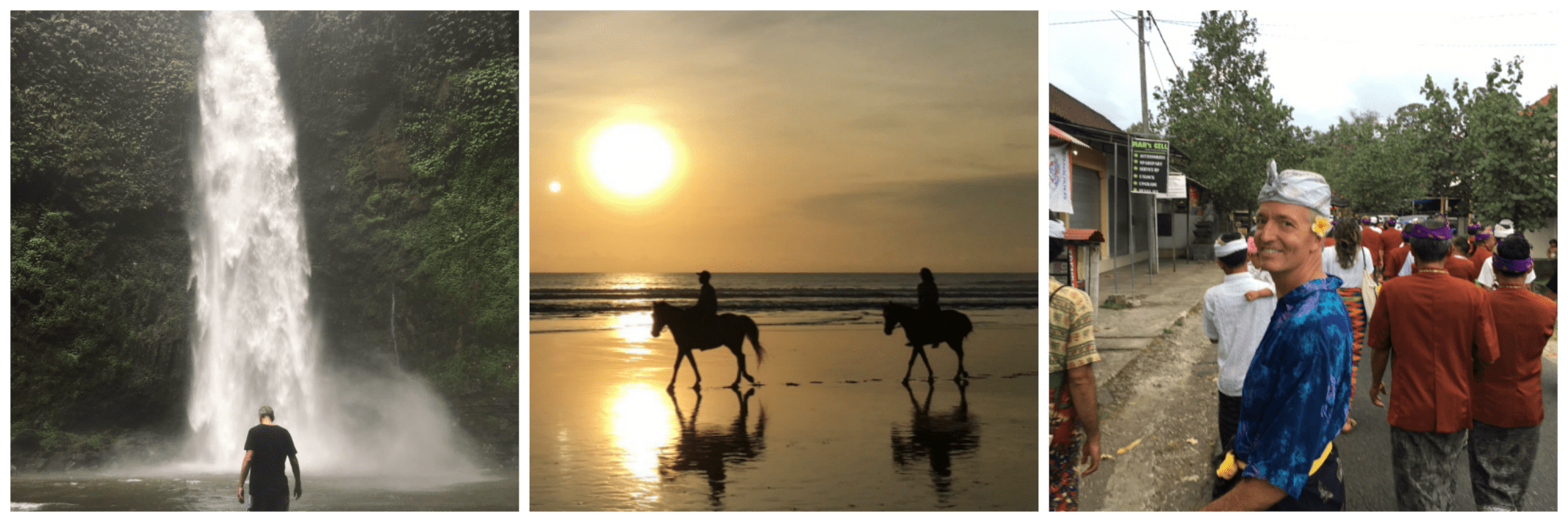 I mean how did I get here in terms of at this point in life? I’ve been the family guy, raising kids and being a marketing worker for over thirty years. My wife passed way from kidney cancer eight years ago. My three children are now out and on their own. After practicing yoga since in my twenties I became an instructor just over two years ago. Last August I left my full-time marketing position to work a Wanderlust Yoga Festival in Canada and then see where yoga could take me around the world. It took me here. First stop – Bali!